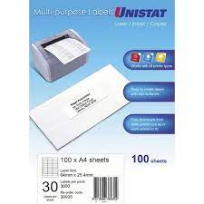- A4 UNISTAT LABELS 30/SHEET 64x25 100SHEETS/PACK