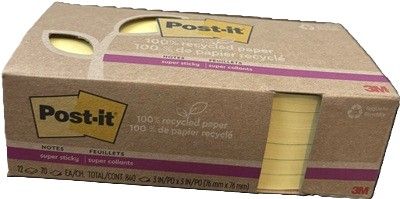 Post-it Notes – 76 x 76mm, 100% Recycled Paper (Canary Yellow)