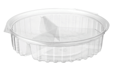 Clear flat lid Sho-bowl containers. Split in 3 compartments. Ideal for nuts and confectionery.