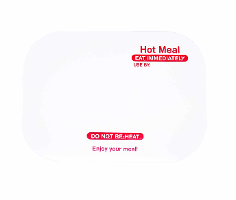 Matching container codes:- 21555 & 21575 Printed for hot meals with reheating instructions, red print on white lid.