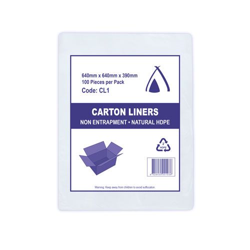 - CARTON LINER CLEAR H/D CL1 640x640x390 100/PK 5PKS/CTN
