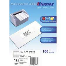 - A4 UNISTAT LABEL 16 SHEET 105X37 100 STS/PAK 38932 *DNR*