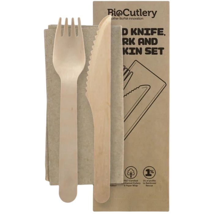 - WOODEN KNIFE/FORK/NAPKIN 16CM 50PK 8PKS/CTN
