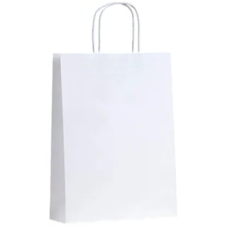 White kraft paper twist handle bags are recyclable, compostable and reuseable. Ideal for retail and market stalls.
