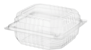 Features: Hinged clamshell closure, clear design for product visibility, durable construction
