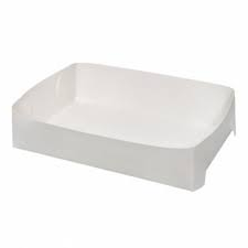 Grease resistant tray perfect for serving cakes, chips and other takeaway foods. Made from sturdy white milkboard and comes flat packed for easy storage and quick assembly