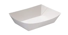 Sturdy and grease resistant tray, ideal for serving taco's, chips and other takeaway foods. Made from white board.