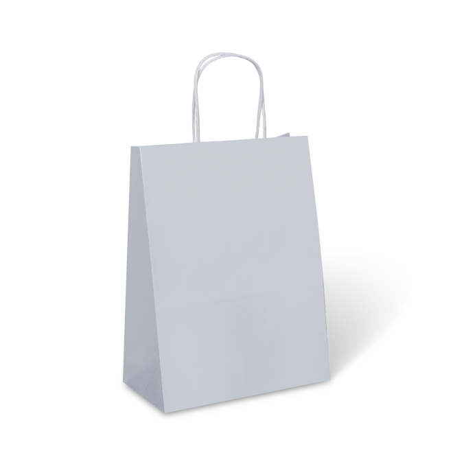 White kraft paper twist handle bags are recyclable, compostable and reuseable. Ideal for retail and market stalls.
