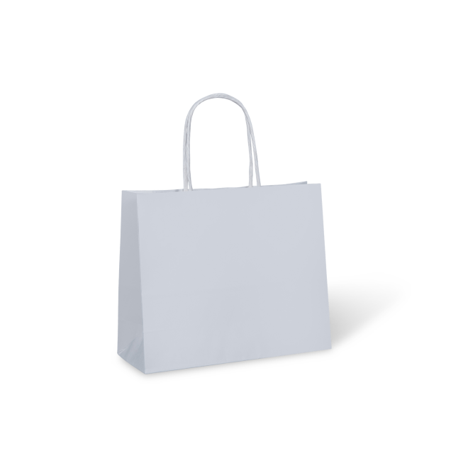 White kraft paper twist handle bags are recyclable, compostable and reuseable. Ideal for retail and market stalls.