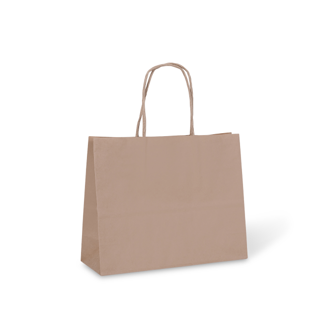 Kraft paper twist handle bags are recyclable, compostable and reuseable. Ideal for retail and market stalls.