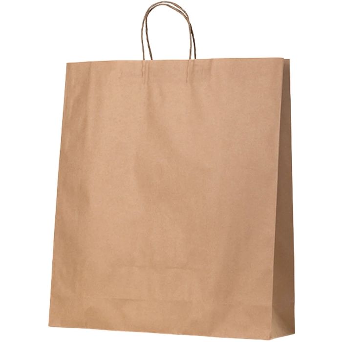 Kraft paper twist handle bags are recyclable, compostable and reuseable. Ideal for retail and market stalls.
