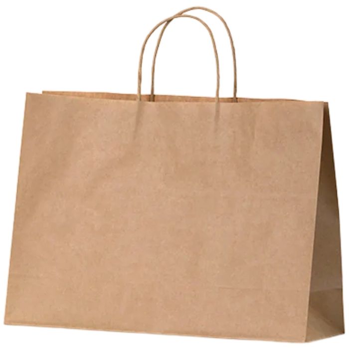 Kraft paper twist handle bags are recyclable, compostable and reuseable. Ideal for retail and market stalls.